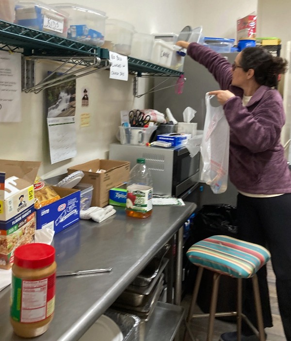 Here is a photo of Jen, one of our wonderful volunteers, preparing a bag lunch for a visitor to our Hospitality Room. This is a day shelter for men and women experiencing homelessness. It is located within the Joseph House Crisis Center.