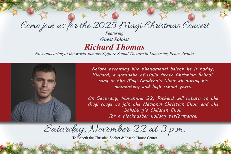 This annual concert to benefit the Joseph House and the Christian Shelter will be Saturday, November 22, at 3 p.m. at Emmanuel Church, 217 Beaglin Park Drive in Salisbury.