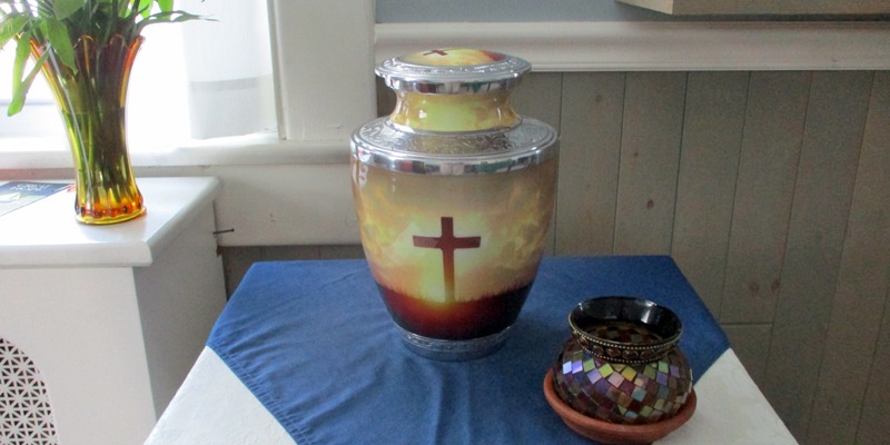 Dave had made his final arrangements well in advance of his passing. He wished to be cremated, and we were honored to hold his remains in our convent chapel in the days before his funeral. He used to joke that one day he was going to become a Little Sister and receive a veil. In a subtle nod to that whimsical desire, we placed one of our veils underneath his urn. Dave’s funeral was at St. Francis de Sales Catholic Church in Salisbury. He was an Army veteran, and military honors were conducted before the mass.